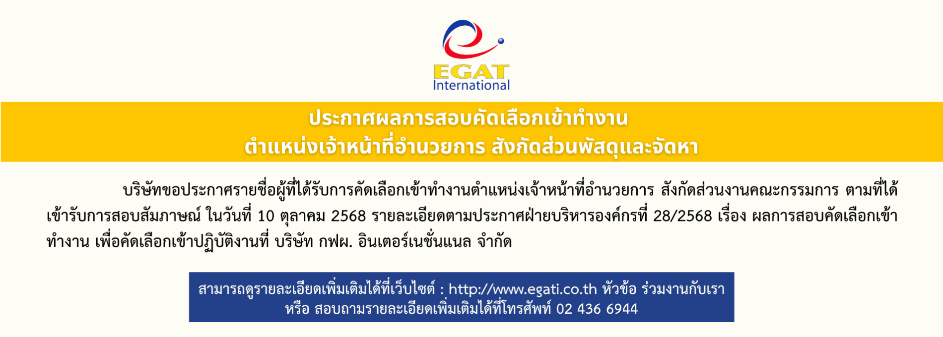 ประกาศผลการสอบคัดเลือกเข้าทำงาน ตำแหน่งเจ้าหน้าที่บัญชี/เจ้าหน้าที่การเงิน และเจ้าหน้าที่บุคคลอาวุโส