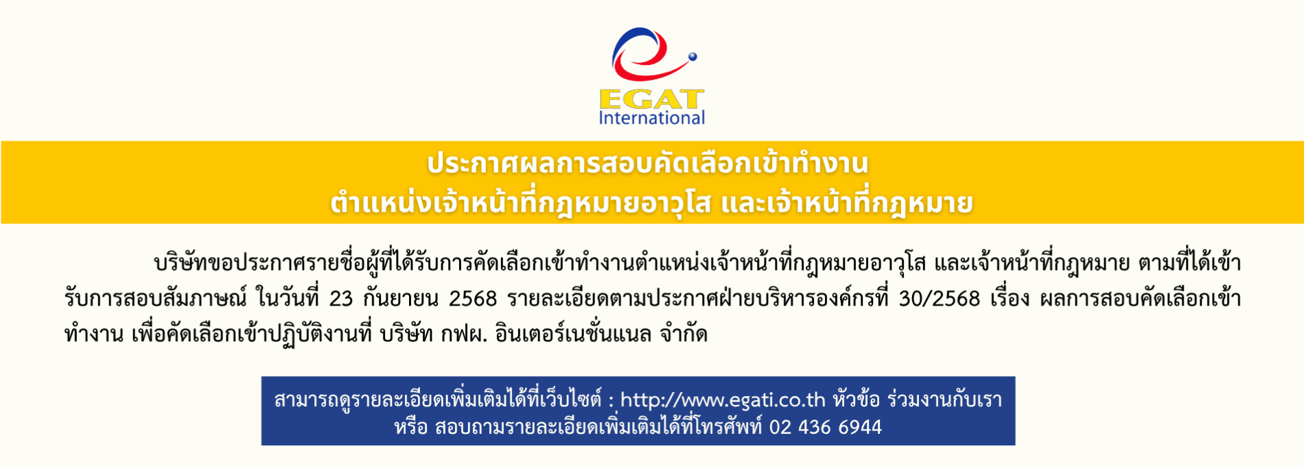 ประกาศผลการสอบคัดเลือกเข้าทำงาน ตำแหน่งเจ้าหน้าที่กฎหมาย และเจ้าหน้าที่กฎหมายอาวุโส
